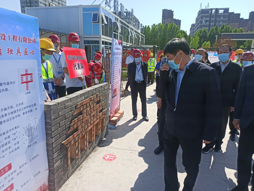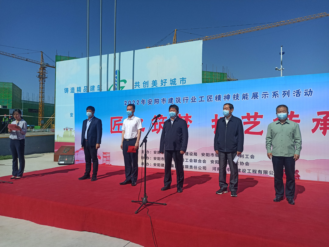 5月16日,由安陽市住建局、安陽市城建交通水利工會共同舉辦的“匠心筑夢 技藝傳承”2022年度安陽市建筑行業(yè)工匠技能展示活動在安陽師范學院教學實驗綜合樓項目工地舉行。集團公司常務副總楊金貴、副總經理王福民、王超帶隊參加了活動。